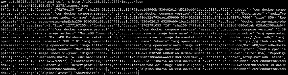 To utilize this attack method, we need to have a valid image name. We can do this by querying the Docker daemon API: