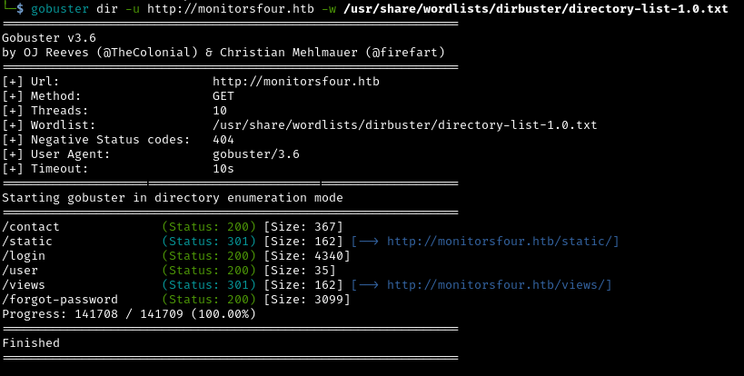 gobuster dir -u http://monitorsfour.htb -w /usr/share/wordlists/dirbuster/directory-list-1.0.txt