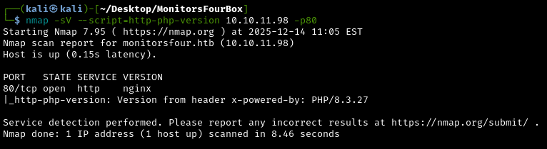 Let’s also figure out the PHP version of the web application, by using an Nmap script made for that specifically: